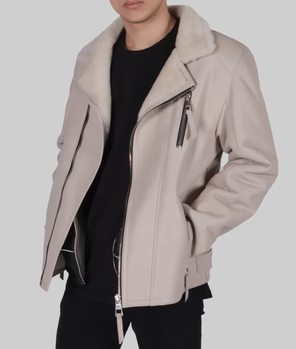 Stylish Colonel Men’s Cream Bomber Leather Jacket