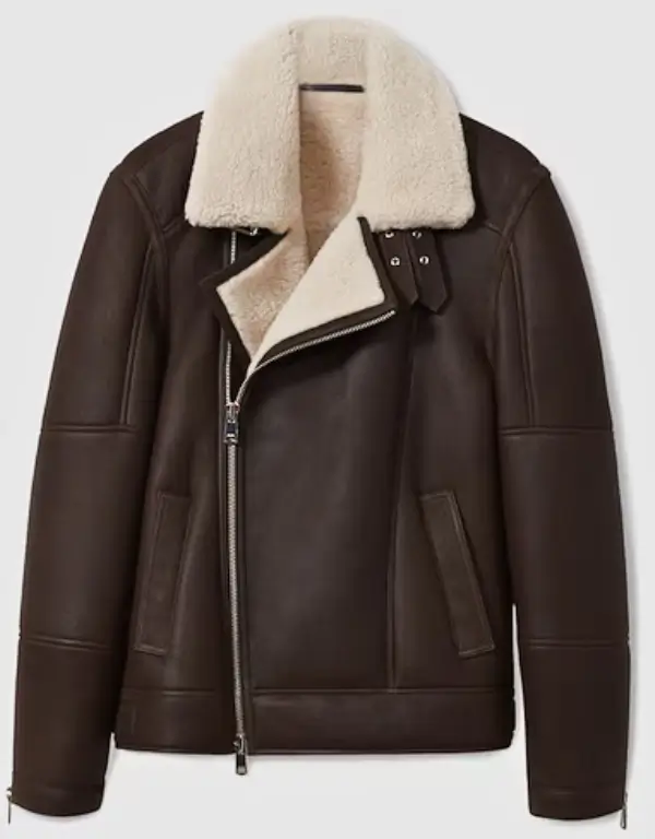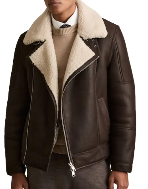 Reiss Shearling Lined Leather Aviator Jacket Dark Brown