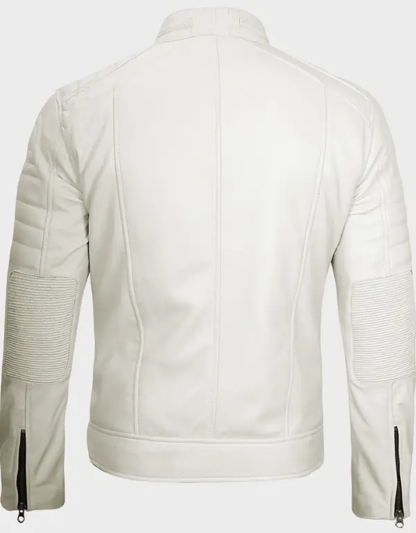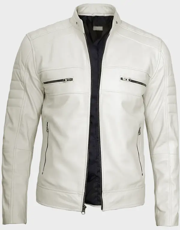 Off White Men Cafe Racer Leather Jacket