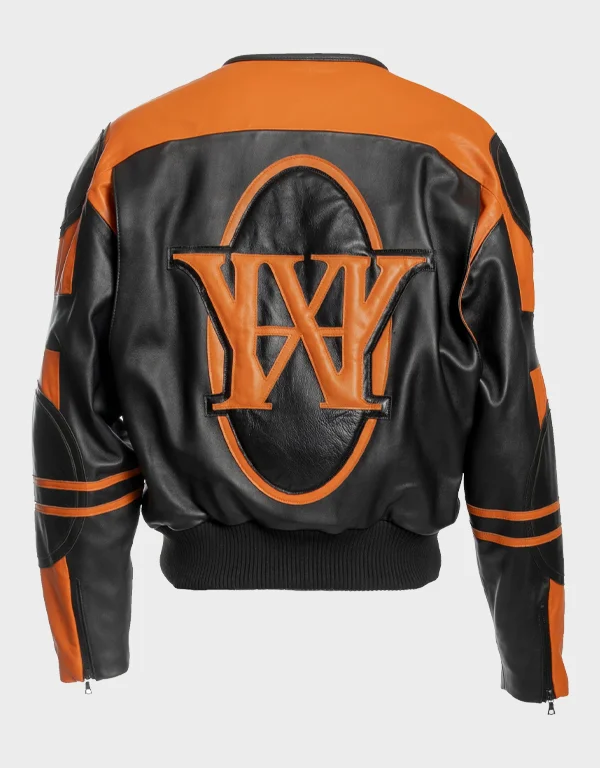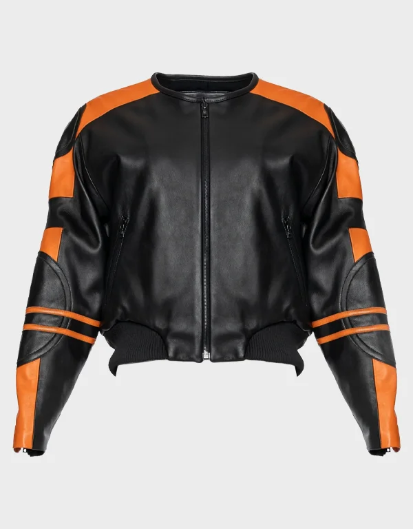 Black & Orange Leather Racer Bomber Jacket 003