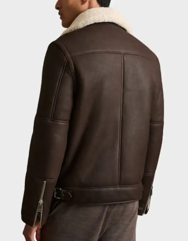 Reiss Shearling Lined Leather Aviator Jacket Dark Brown